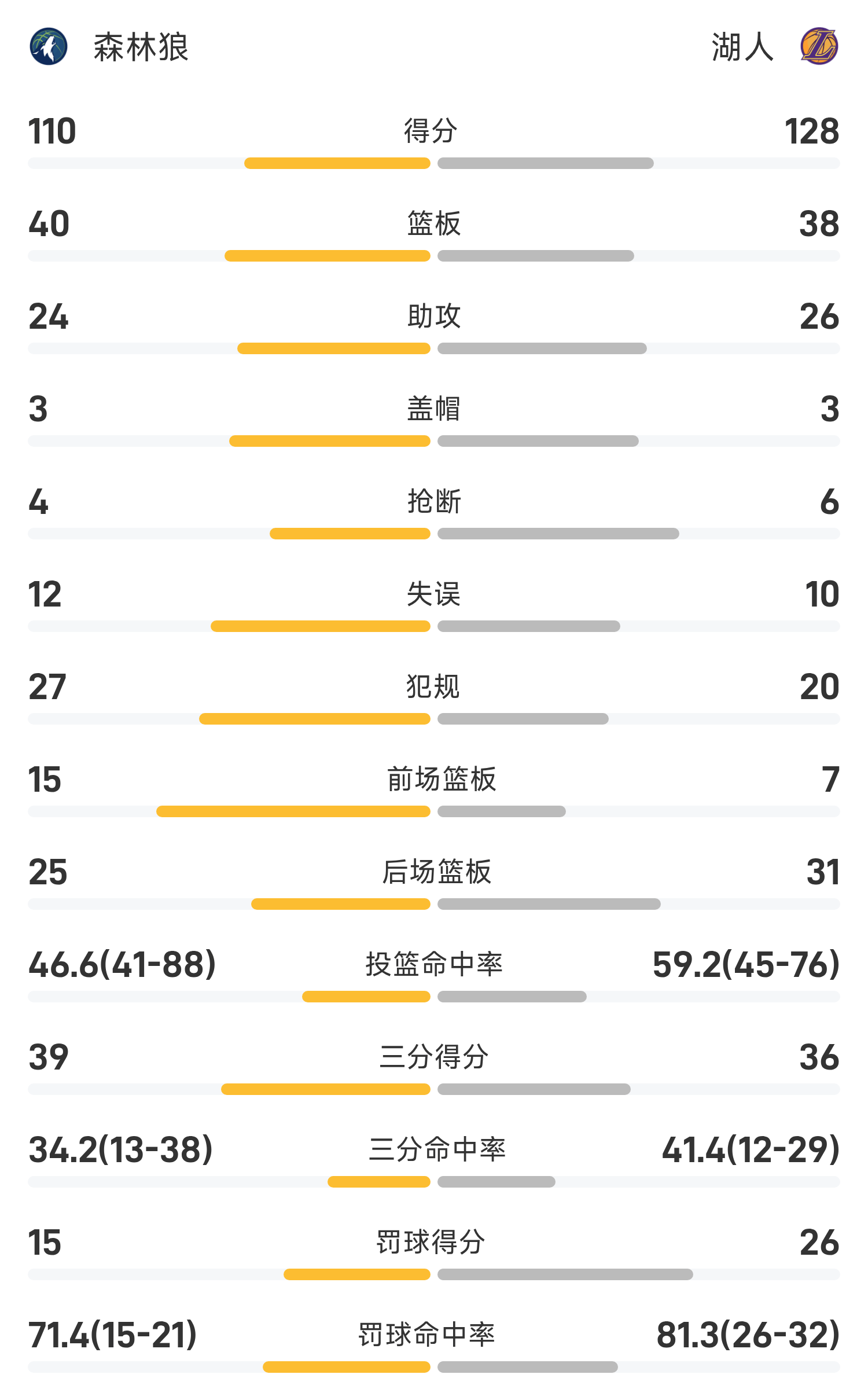 6686体育app10月25日讯 25/26赛季NBA 常规赛,湖人对阵森林狼。双方全场战罢,湖人128-110战胜森林狼。东契奇砍下全场最高的49分11板8助,率领湖人胜利取胜。