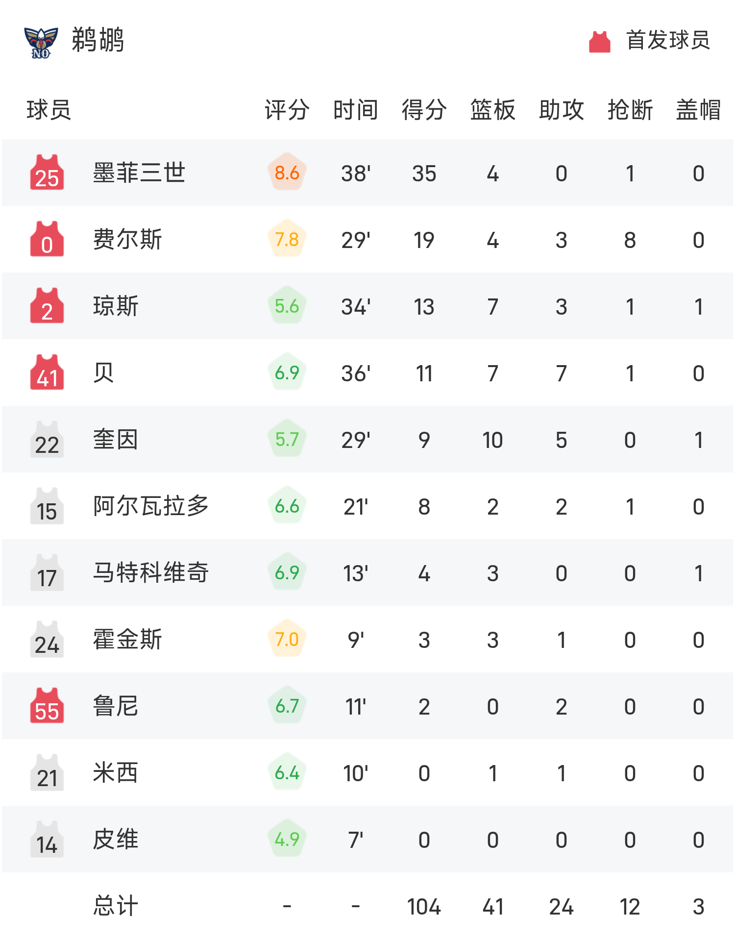 双方全场战罢,鹈鹕104-118不敌湖人。