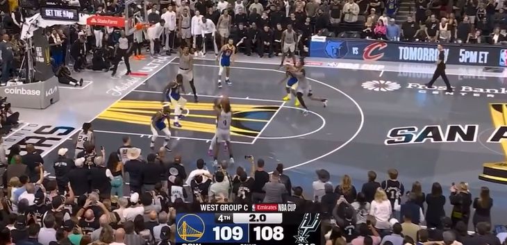 库里关键2罚全有,福克斯最后一投急停跳投弹框不中,勇士1分险胜马刺