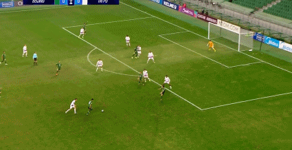 50’古加主罚边线球直接打门,随后插上再射稍稍高出目标