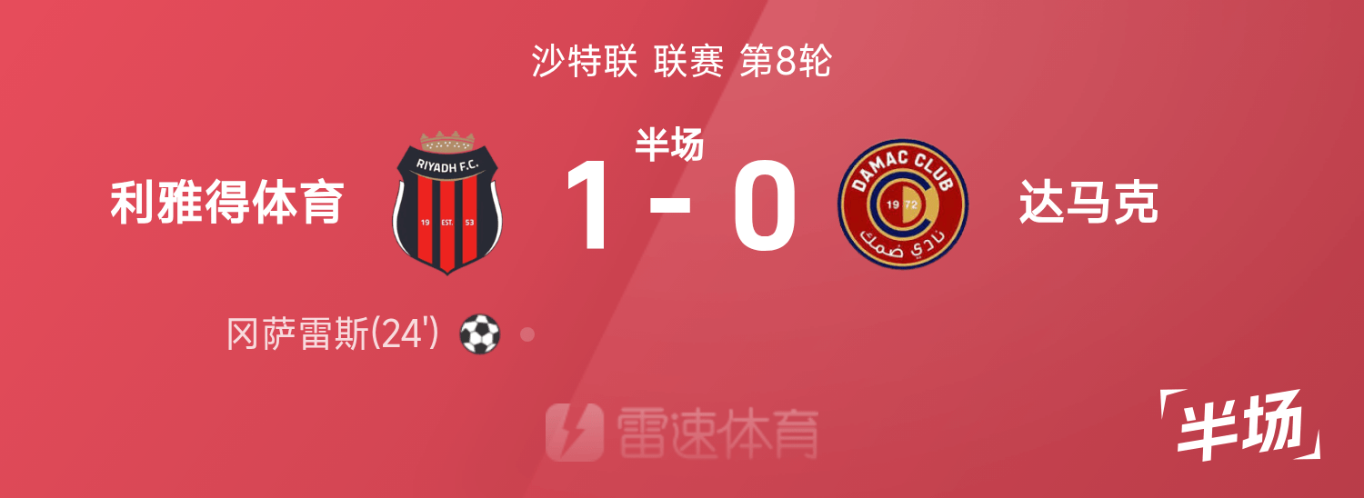 沙特联半场:冈萨雷斯头槌破门,利雅得体育暂1-0达马克