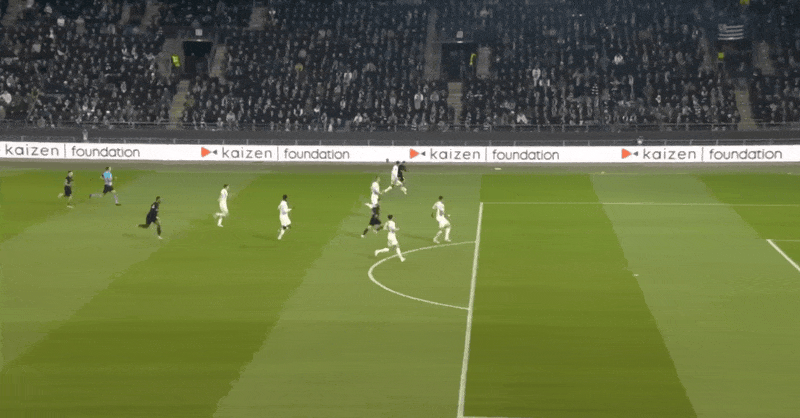 84’身背一张警告牌的耶茨踩踏卡永博,主裁判判未判违例