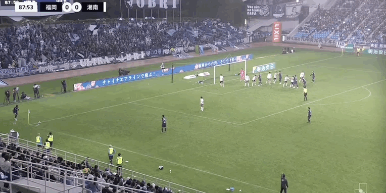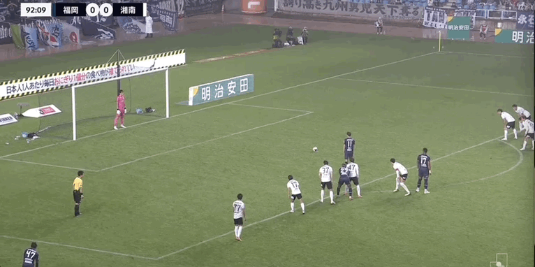 90+3’ 湘南守门员拳击送点,见木友哉主罚命中,福冈1-0湘南
