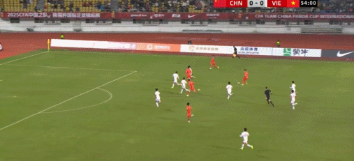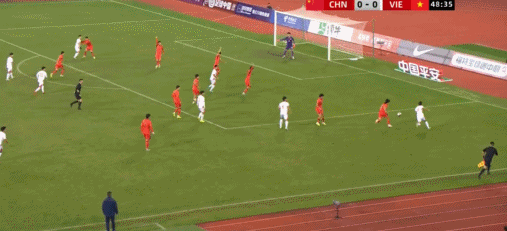 49’越南队制造威胁攻势,阮国越打门遭守卫球员阻挡被守门员得到