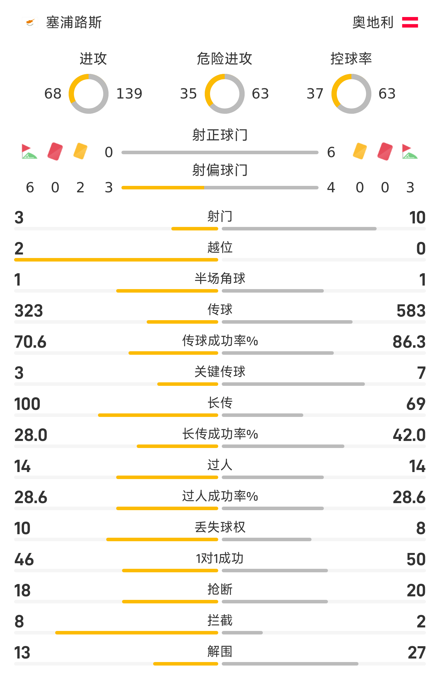 55’阿瑙托维奇双响,奥地利暂2-0领跑位塞浦路斯