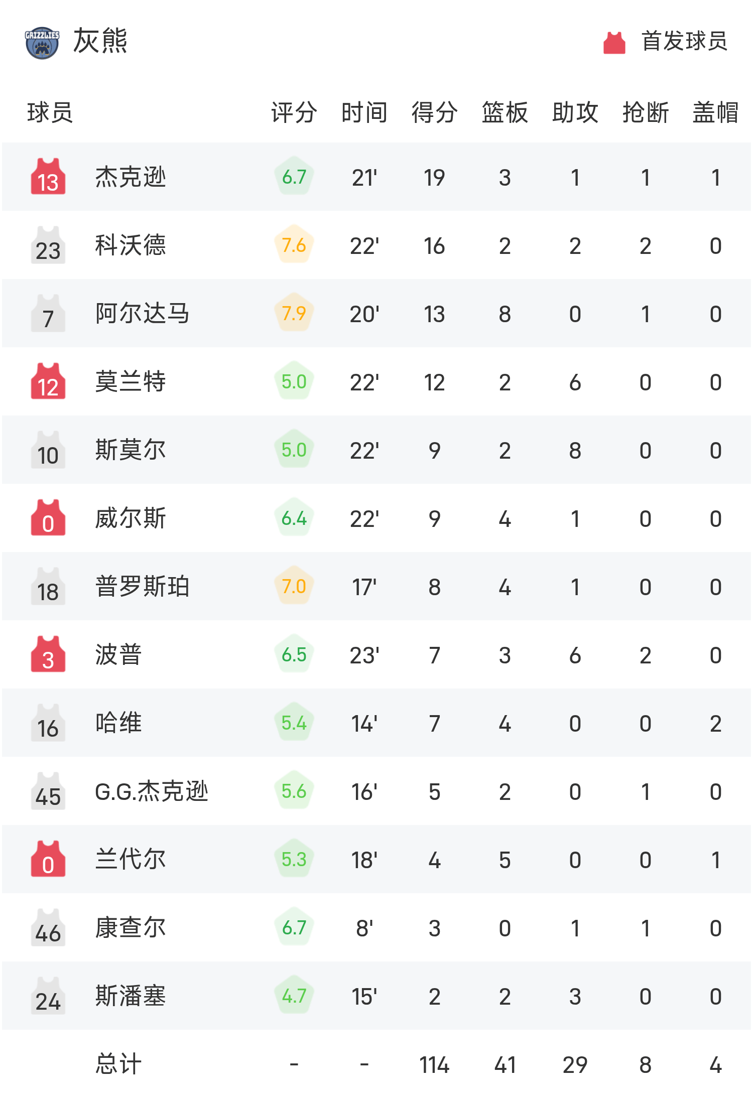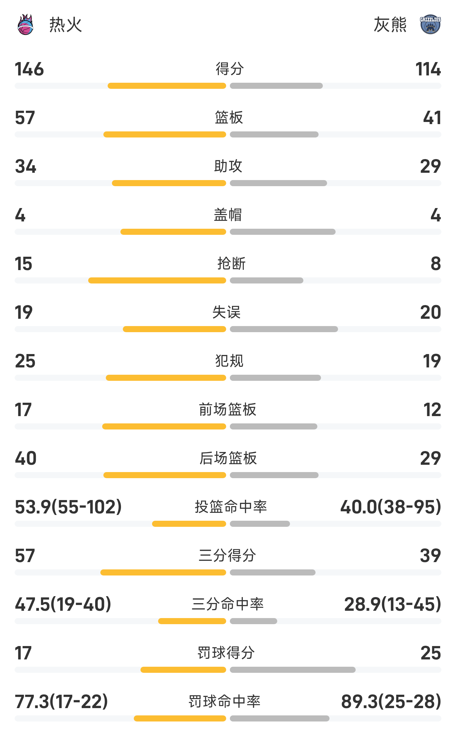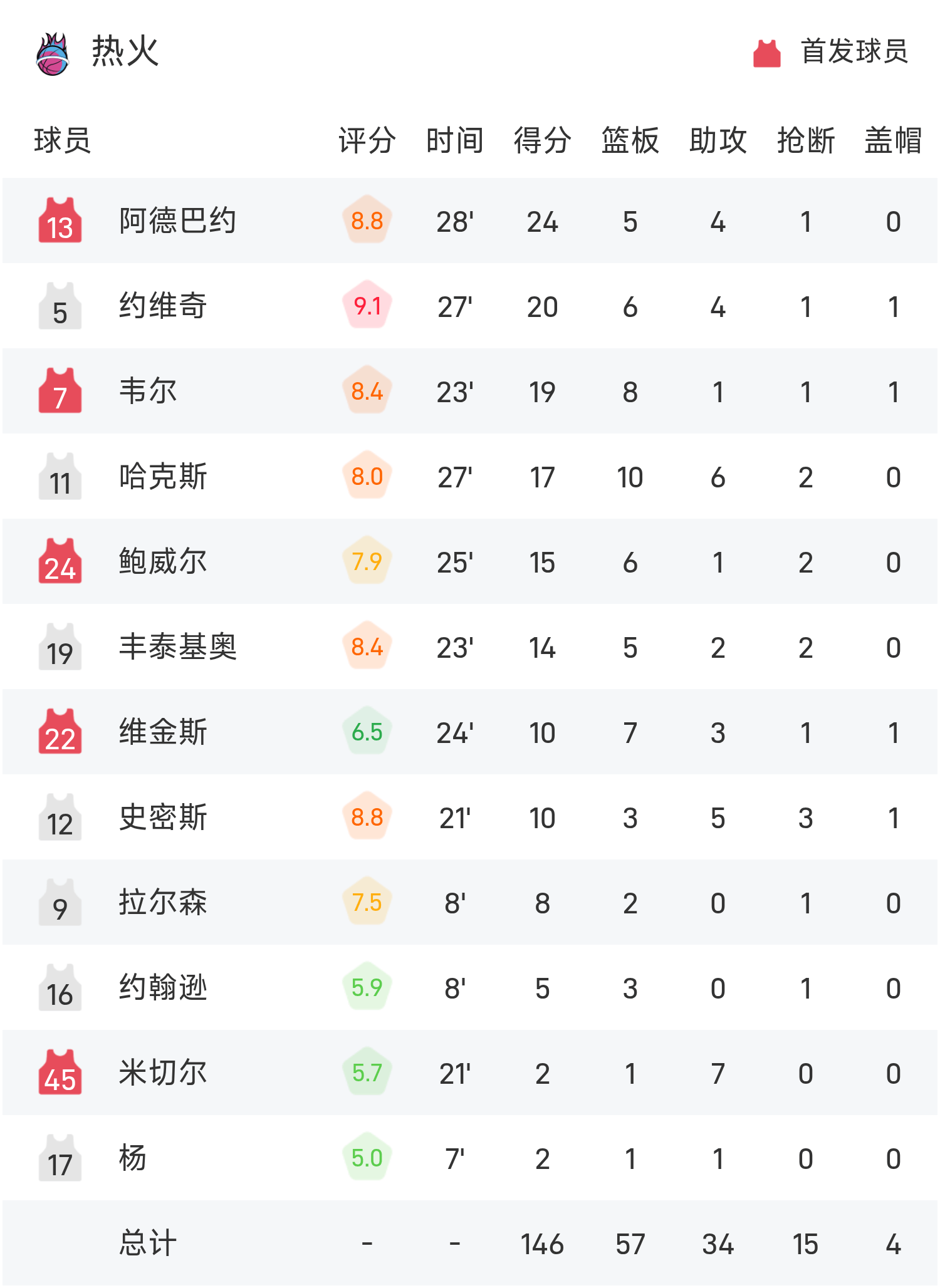 6686体育app10月25日讯 25/26赛季NBA 常规赛,灰熊对阵热火。双方全场战罢,灰熊114-146不敌热火。阿德巴约砍下全场最高的24分5板4助,率领热火胜利取胜。