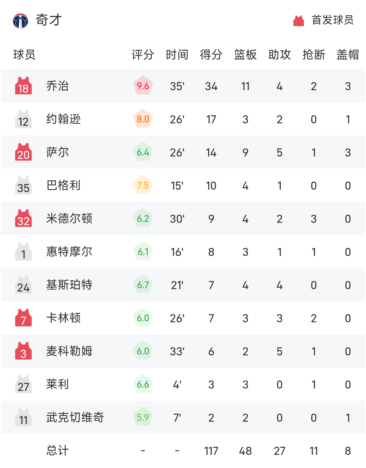 6686体育app10月25日讯 25/26赛季NBA 常规赛,独行侠对阵奇才。双方全场战罢,独行侠107-117不敌奇才。乔治砍下全场最高的34分11板4助,率领奇才胜利取胜。