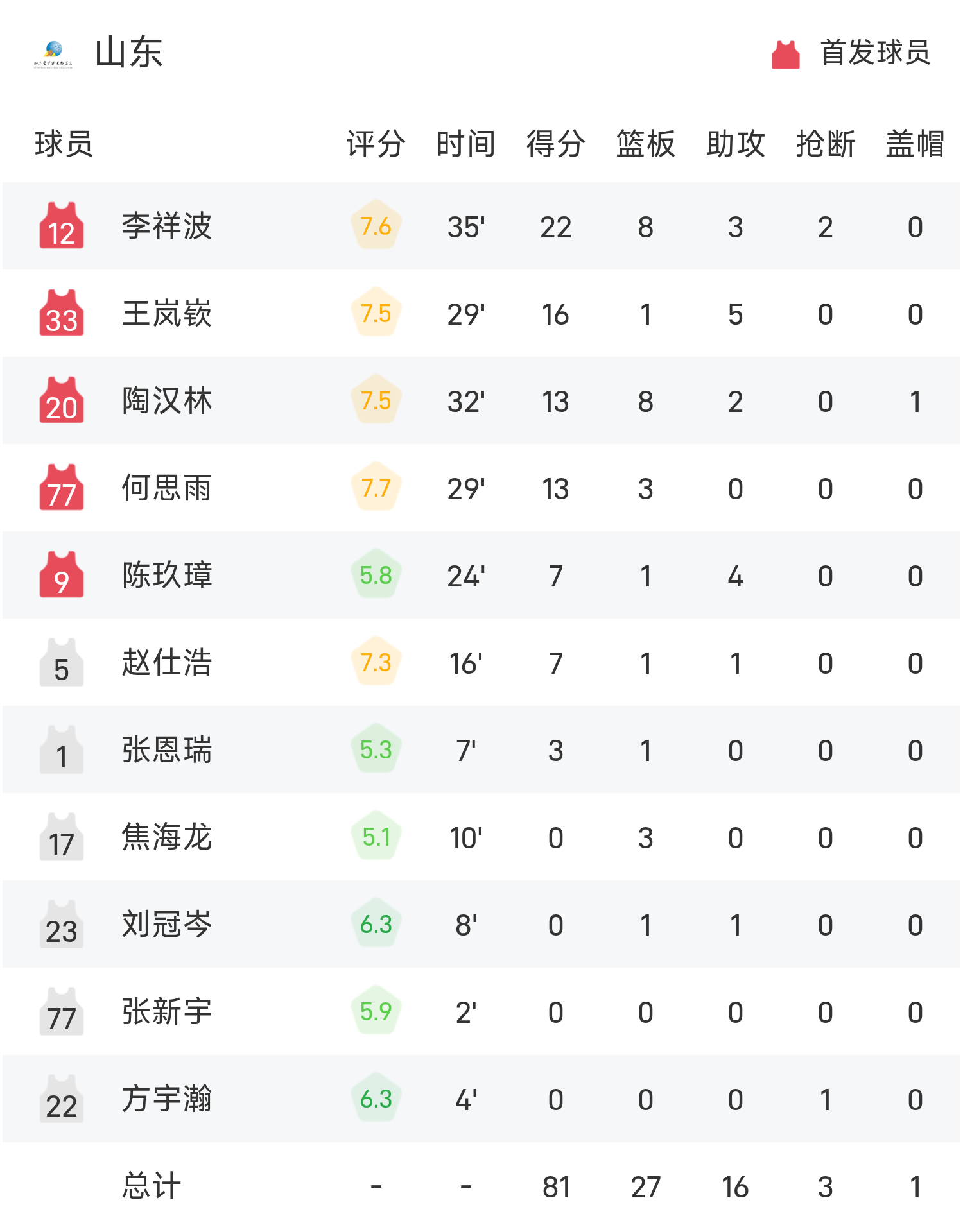 全运男篮战报:余嘉豪18分9板,浙江85-81险胜山东