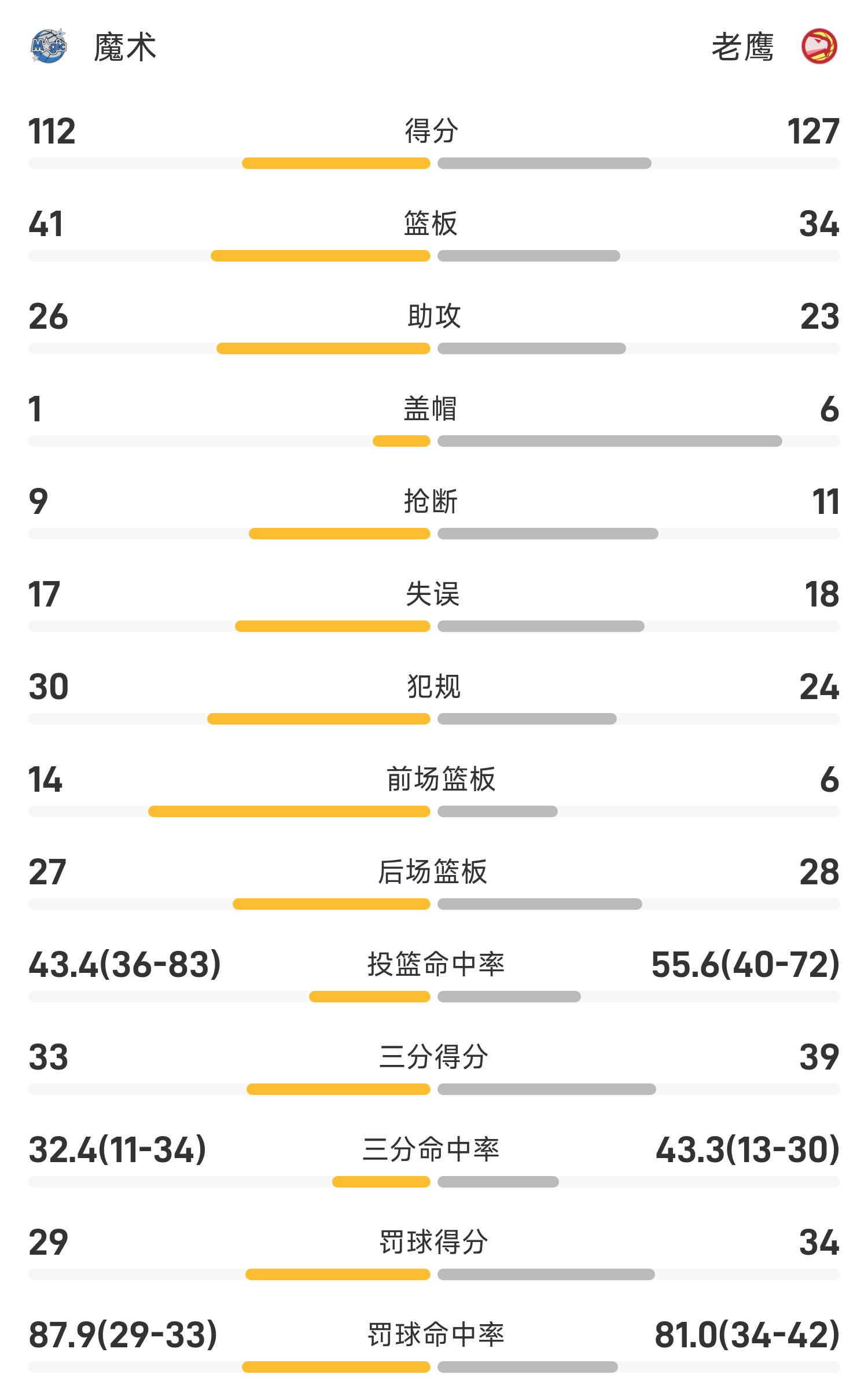 6686体育app11月05日讯 25/26赛季NBA 常规赛,老鹰对阵魔术。双方全场战罢,老鹰127-112战胜魔术。里萨谢得到21分4板1助率队取胜,班凯罗空砍全场最高的22分11板8助。