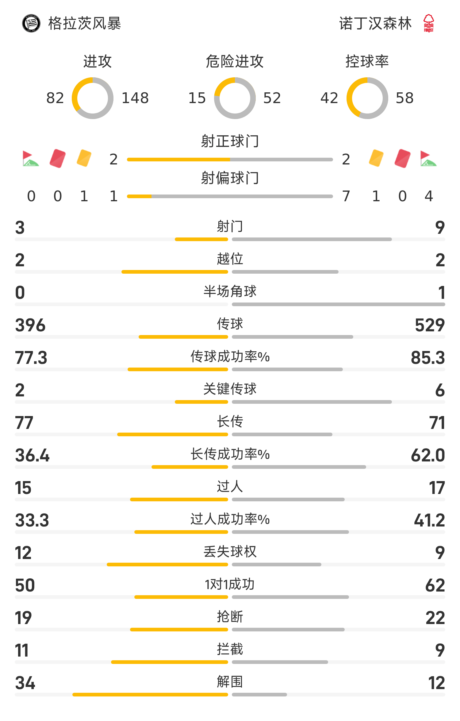 10’森林队前场威胁定位球,麦卡蒂迎球推远角稍稍偏出立柱