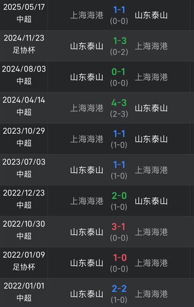 泰山上次击败海港在1093天前,近10次交锋双方各胜3场