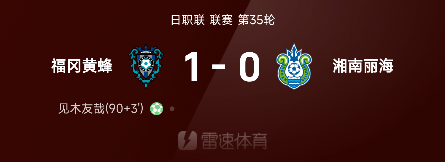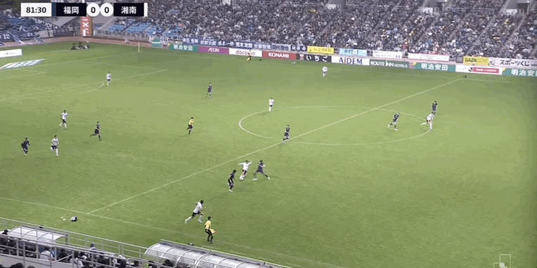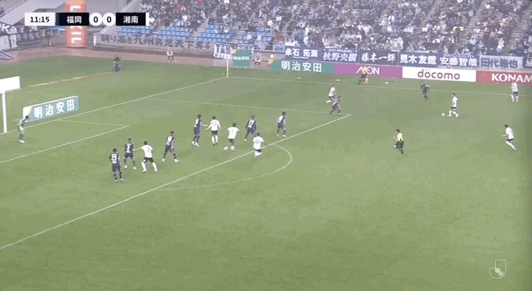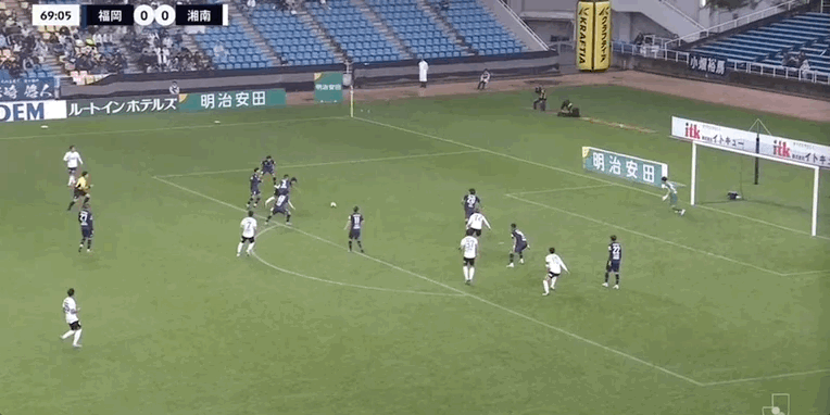 90+3’ 湘南守门员拳击送点,见木友哉主罚命中,福冈1-0湘南