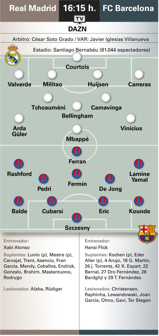 6686体育app10月26日讯 北京时间今晚23点15分,西甲国家德比将在伯纳乌上演。皇家马德里主队场迎战巴塞罗那,这不仅是赛季首回合“国家德比”,更是一场争夺榜首的直接对话——如果取胜,巴萨将逆转局皇马登顶积分榜。赛前,《世界体育报》对两队首发进行了预测。