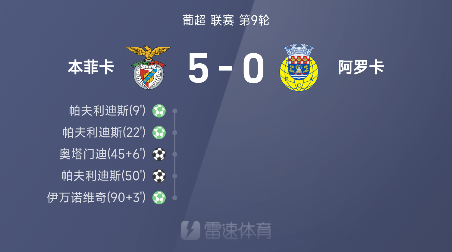 葡超战报:帕夫利迪斯帽子戏法,本菲卡5-0狂胜阿罗卡