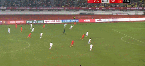 49’越南队制造威胁攻势,阮国越打门遭守卫球员阻挡被守门员得到