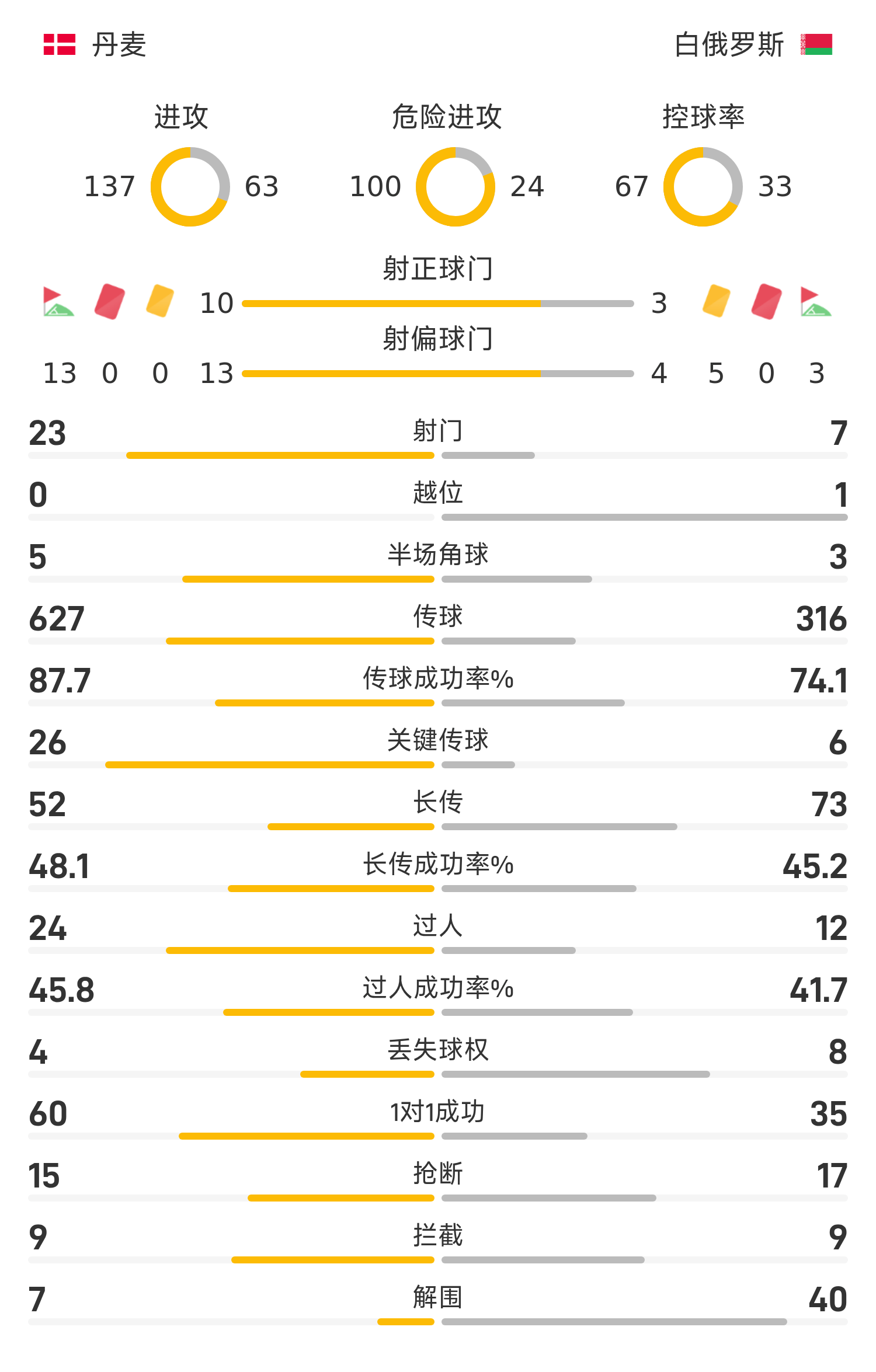 4’埃里克森主罚自由球直接打门,皮球被白俄罗斯人墙挡出