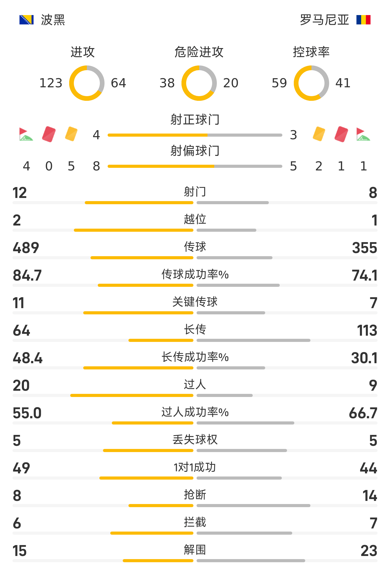 6686体育app11月16日讯 26赛季世欧预分组赛H组第9轮,波黑坐镇主队场迎战罗马尼亚。上半场,罗马尼亚梦幻开局,比利吉亚破门建功。下半场,波黑开端发力,哲科破守门员赛果分扳平。德拉古斯上场两分球钟严重违例染红罚下,罗马尼亚十人应战波黑。第79分钟,巴伊拉塔雷维奇世界波破门逆转局,塔巴科维奇破门锁定战局。比利吉亚破门难救主。最终,波黑3-1战胜十人罗马尼亚。