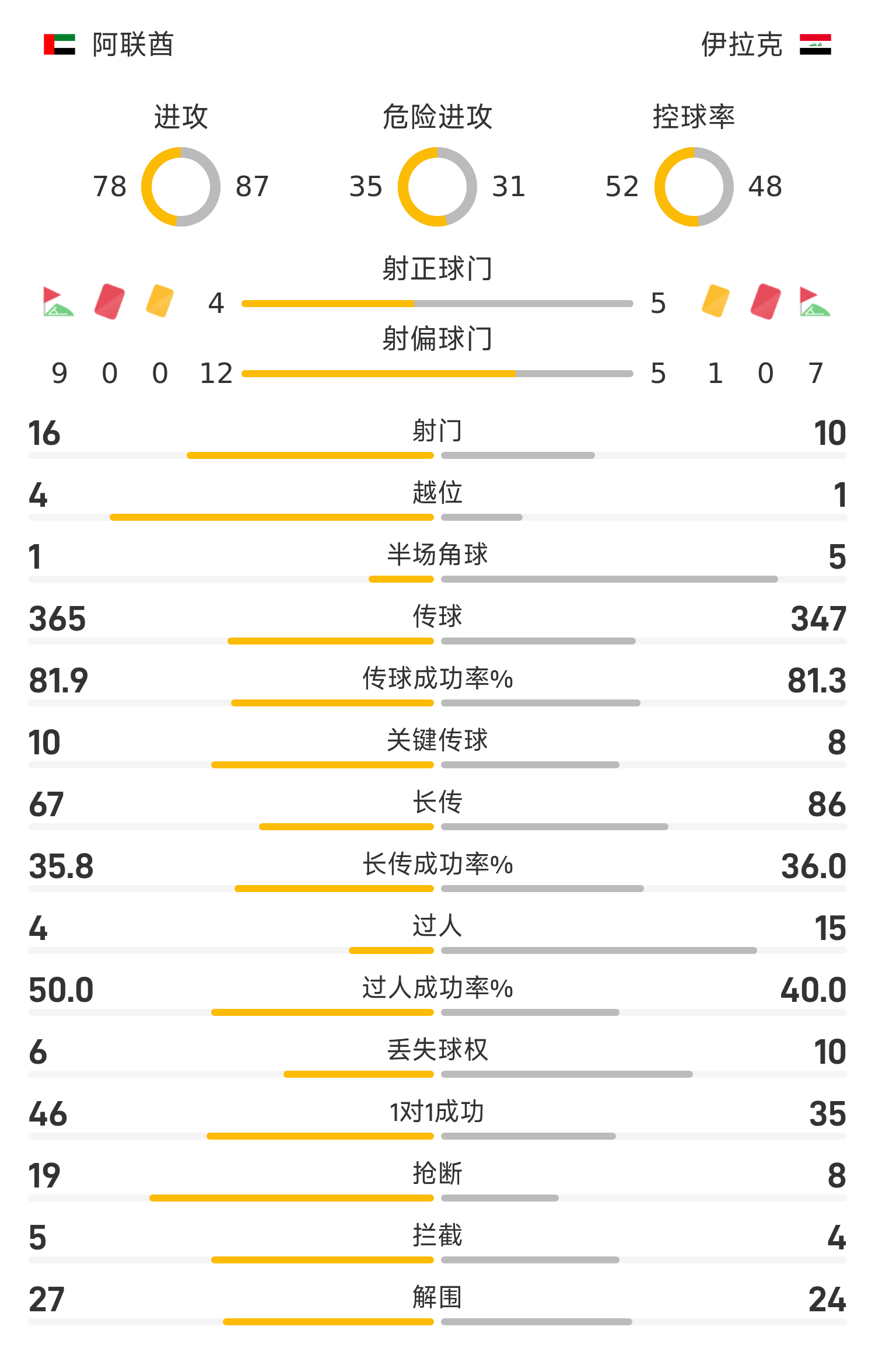 伊拉克首发阵容:12-哈桑、3-阿里、23-多斯基、4-塔辛、5-拉赫曼、16-阿尔阿马里、21-法吉(90’15-叶海亚)、8-谢尔(79’14-伊克巴尔)、17-贾西姆(72’11-赛义德)、10-阿里(79’7-卡里姆)、9-祖拜迪(46’18-胡塞恩)