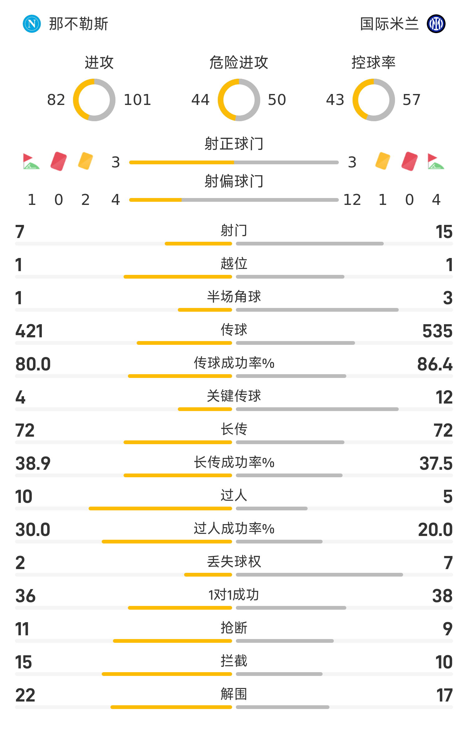 15’劳塔罗三秒区绝佳机会,打门被那不勒斯守门员扑出